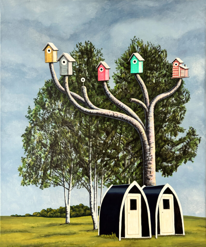 - 1076 Das Wolkenkuckucksheim von Kirkenes, 2025, 50 x 60 cm, Acryl auf Leinwand