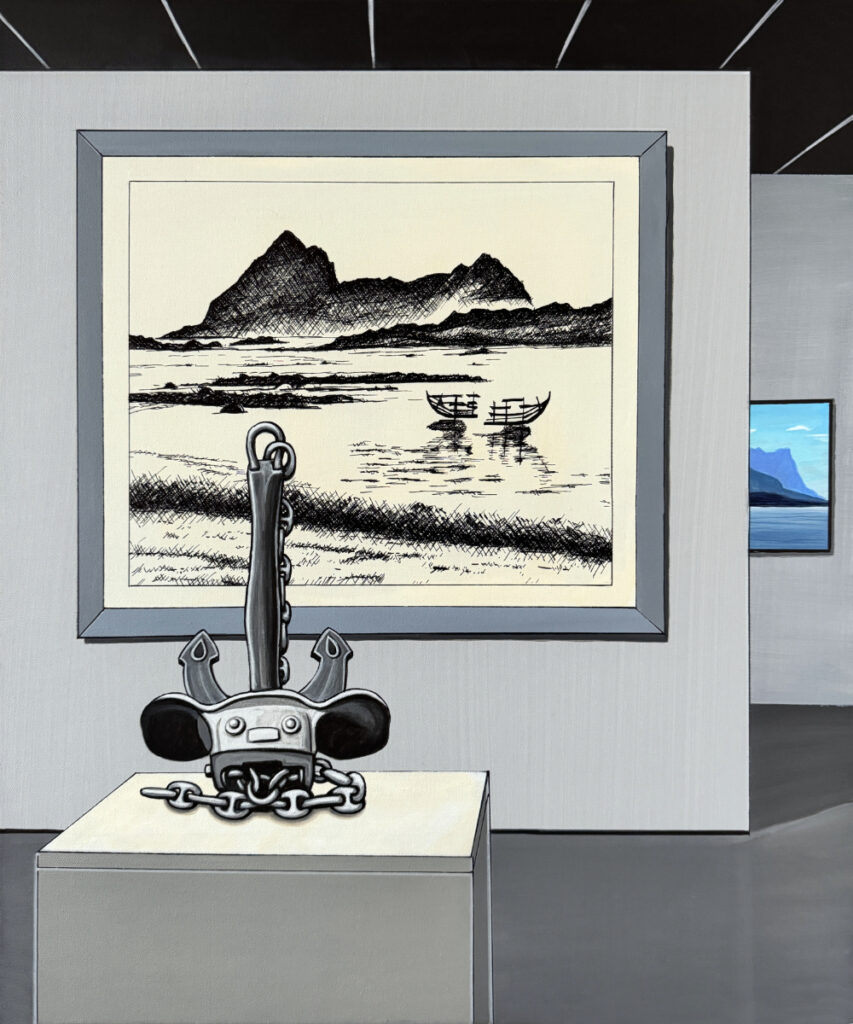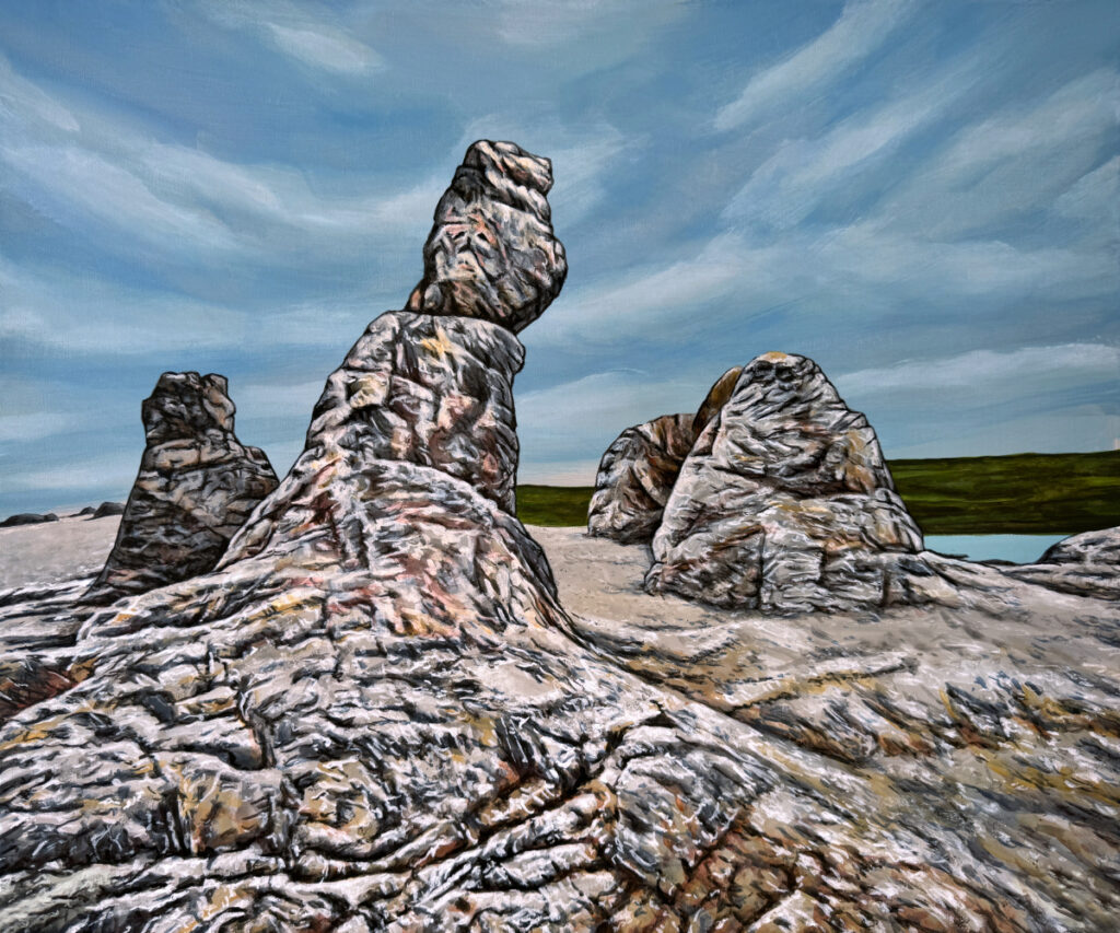 - 1077 Staunen in Trollholmsund, 2025, 50 x 60 cm, Acryl auf Leinwand